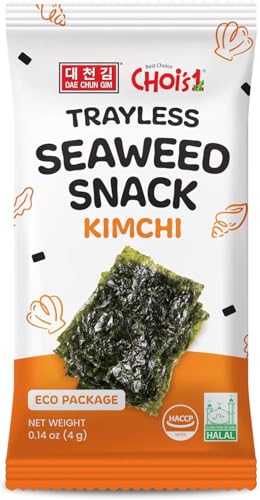 Roasted Seaweed Snacks – Kimchi Flavor, 20 Pack (4g Each) | Trayless Eco-Friendly Packs – Spicy Korean Nori Snack, Gluten-Free, Vegan, Keto, Low-Calorie