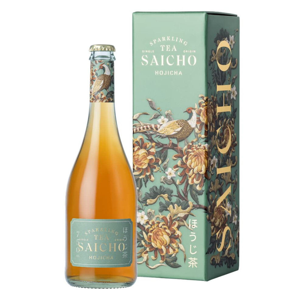 Saicho | Luxurious Non-Alcoholic Hojicha Sparkling Tea - Nori Seaweed, Roasted Hazelnut, Delicate Smoke Notes & Dry Woody Tannins - 750ml Bottle - Gift box included