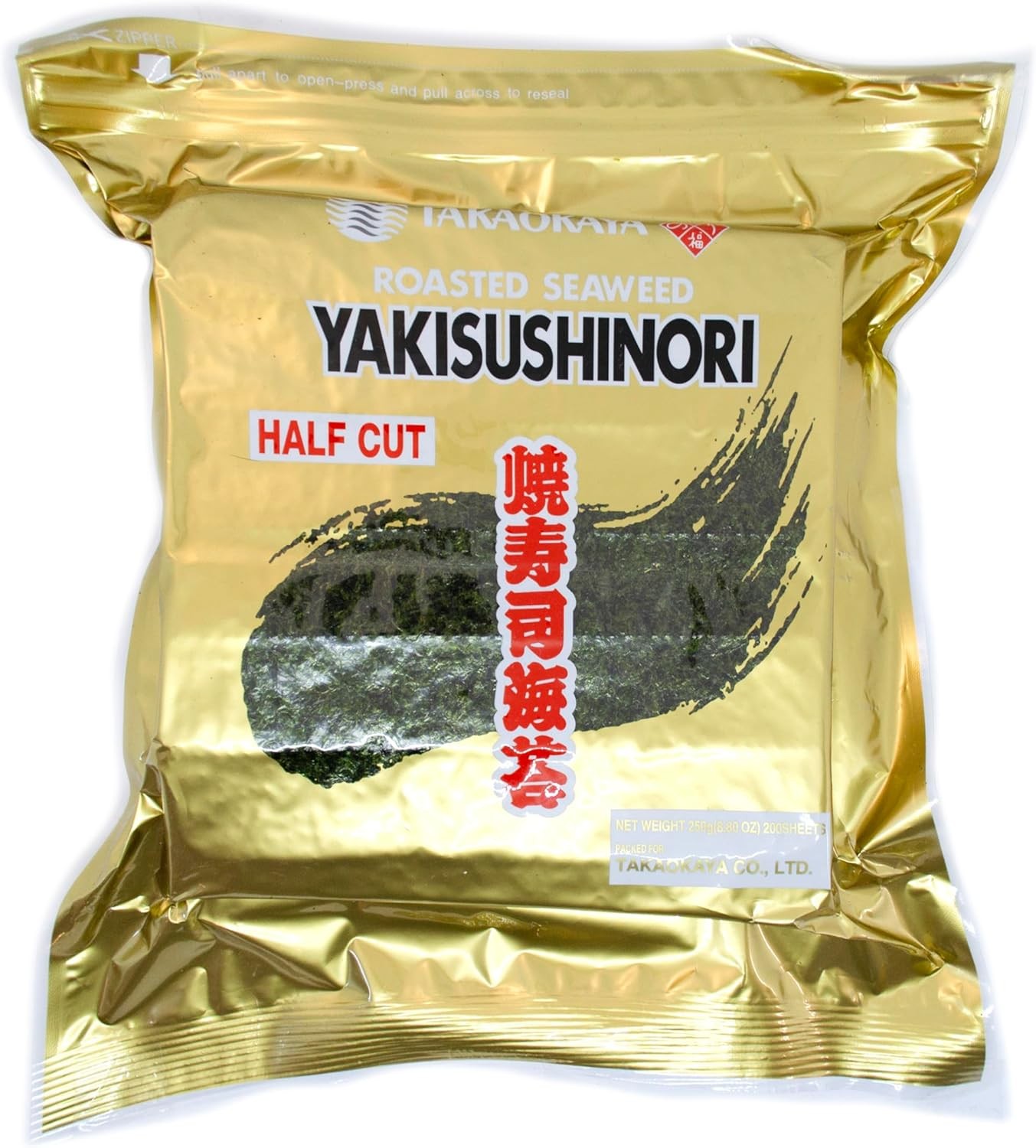 Takaokaya Roasted Seaweed – Yakinori Miyabi Half Cut 100pc | Miyabi Grade Half-Sheets Sushi Nori | Premium Roasted Texture & Deep Umami | Vegan & Gluten-Free