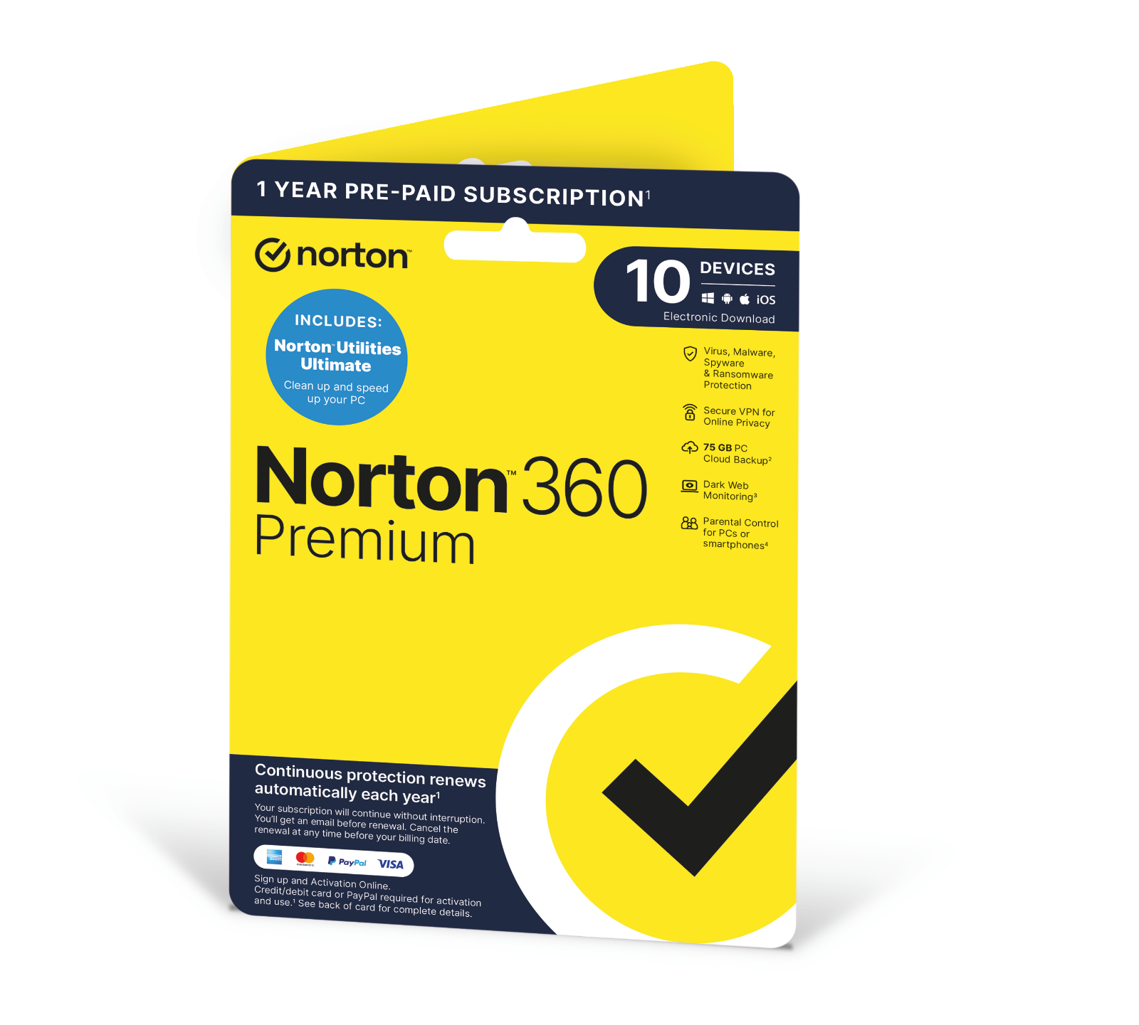 Norton 360 Premium Antivirus 2025 10 Device 1 Year Delivery by Post