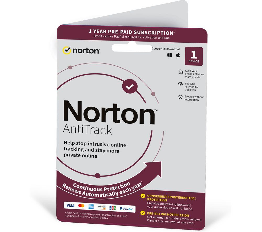 Norton AntiTrack Anti Track 2025 1 Device 1 Year Tracking Blocker BY POST