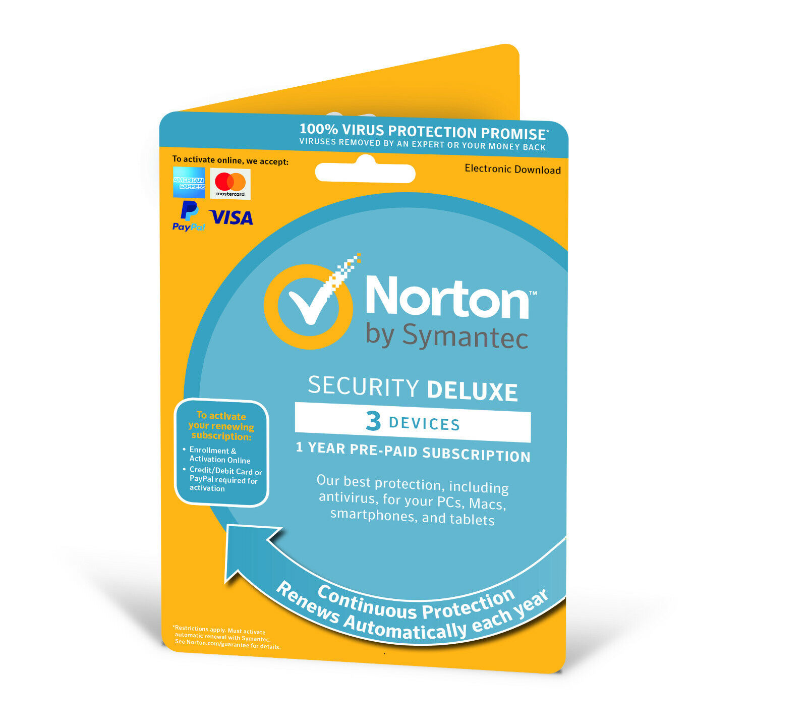 Norton Security Deluxe 3 Device VPN 2024 1 Year PC Mac Android iOS Sent by Post