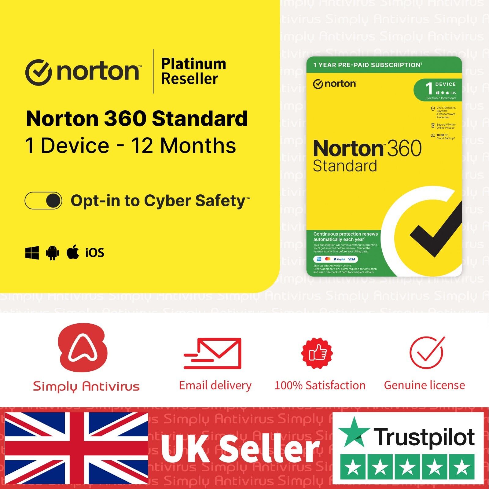 Norton 360 Standard Antivirus 2025 1 Device 1 Year PC Mac iOS Delivery by Post