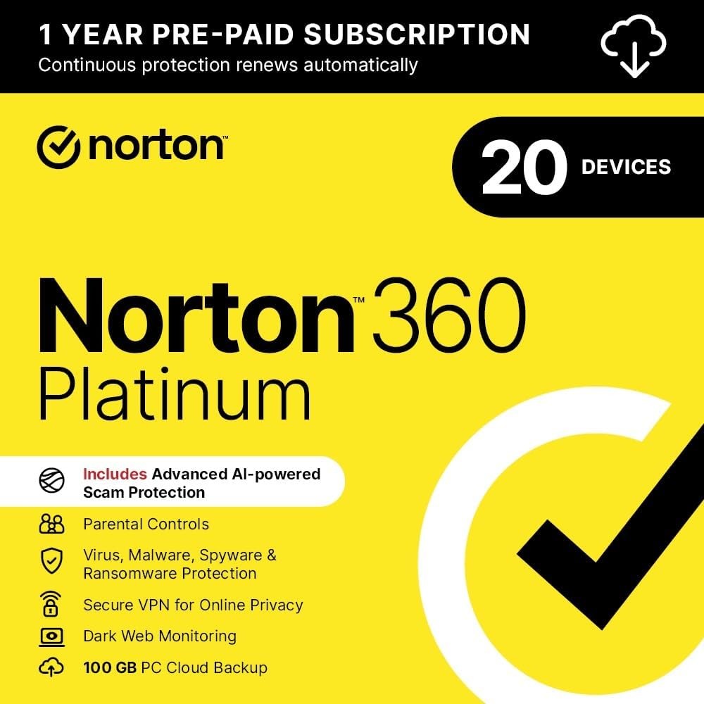 Norton 360 Platinum 2026 - Antivirus software | 20 Devices | 1-year subscriptio