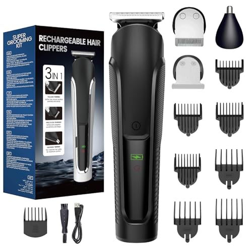 Beard Trimmer Men, Hair Clippers Men, All-in-One Men's Grooming Kit with Nose and Ear, Detail Trimmer, IPX6 Waterproof Professional Cordless Hair Clipper with 4 Limit Combs-Black