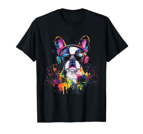 Dog French Bulldog Music Headphones Art Fur Nose Frenchie T-Shirt
