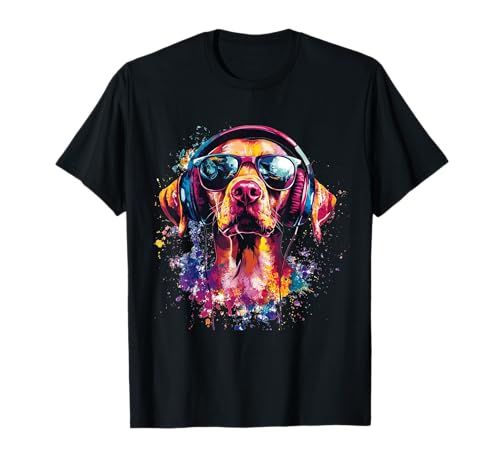 Dog Vizsla music headphones colorful art fur nose T-Shirt