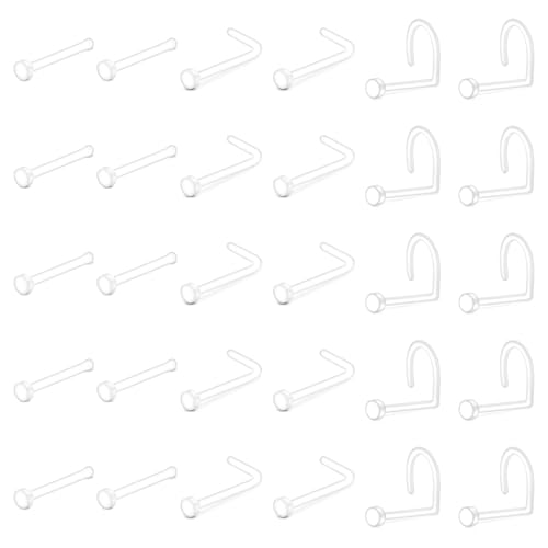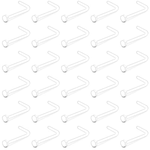 Crdifu 30pcs Clear Nose Studs Retainers 20G Flat Top Invisible Screw L Shaped Nose Bone Stud Piercing for Work School