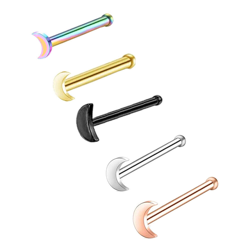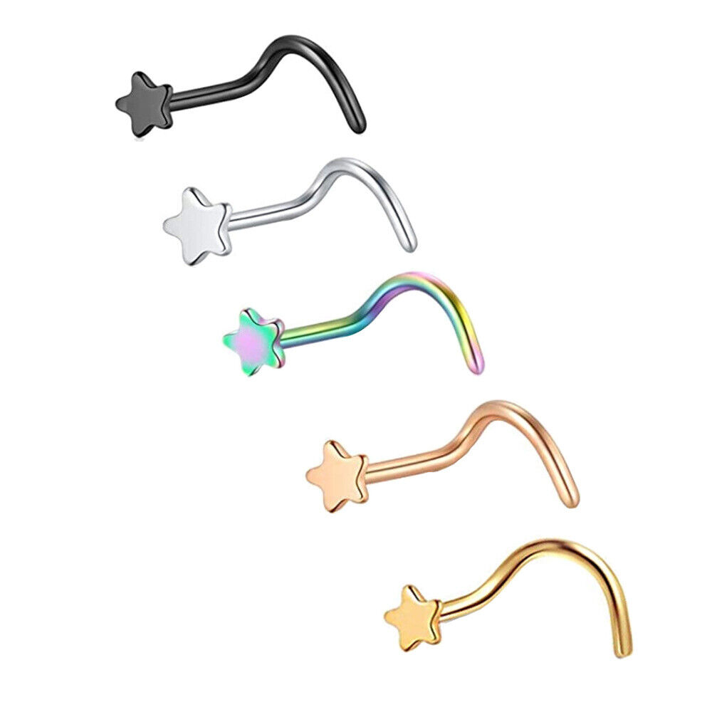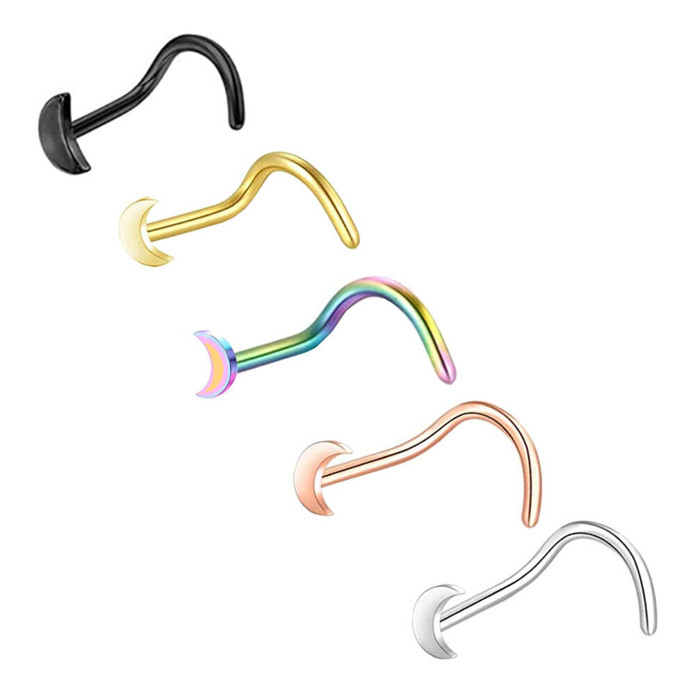 OUFER 20G 4PCS Nose Stud Titanium G23 Nose Piercing S-Shaped Nose Jewellery Clear CZ Nose Screw 7 mm Star Nose Piercing Stud Heart Nose Ring Moon Nostril Piercing