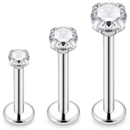 ADRAMATA 2Pcs G23 Titanium Labret Piercing Jewellery Lip Bar Internally Threaded Medusa Piercing Nose Stud Nose Piercing Cartilage Earrings Piercing Studs Silver Gold Tragus Helix Piercing Jewellery