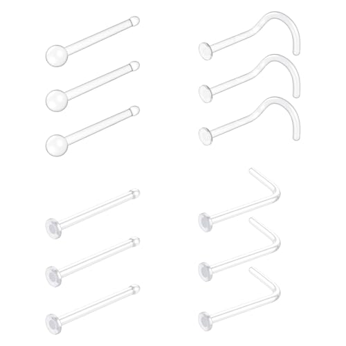 AaceFun Clear Nose Stud Bioflex for Women Men Plastic Clear nose studs hide piercing for school L Shaped Corkscrew 1 Shape Body invisible Piercing Retainer 18g Nose Piercing Stud Jewelry 12 pieces