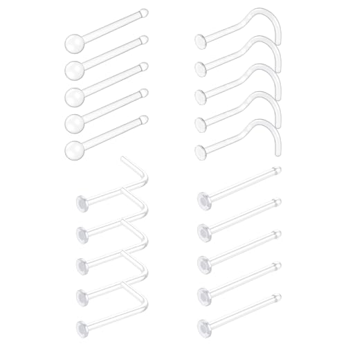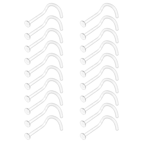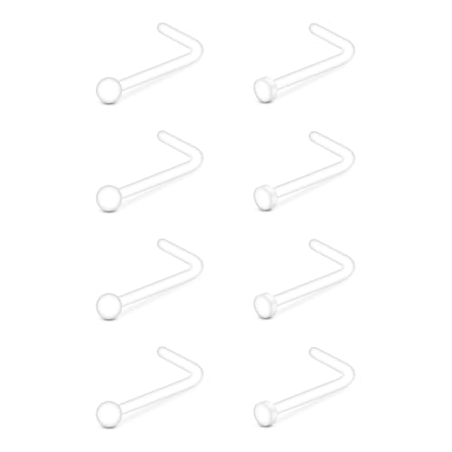 LAURITAMI 20G Clear Nose Stud Piercing Retainer L Shpaed Straight Screw Nose Stud Bioflex Plastic Studs Retainer for School Work