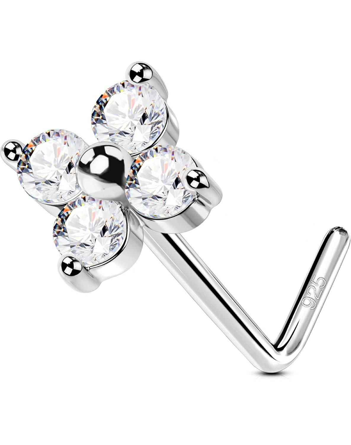 OUFER 20G Flower Nose Piercing Stud Sterling Silver 925 Nose Jewellery L-Shaped