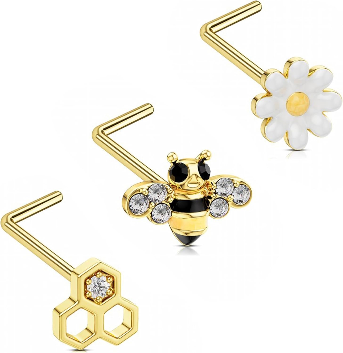 OUFER Body Piercing Nose piercing Stud Bar 20G Nostril Jewellery gold