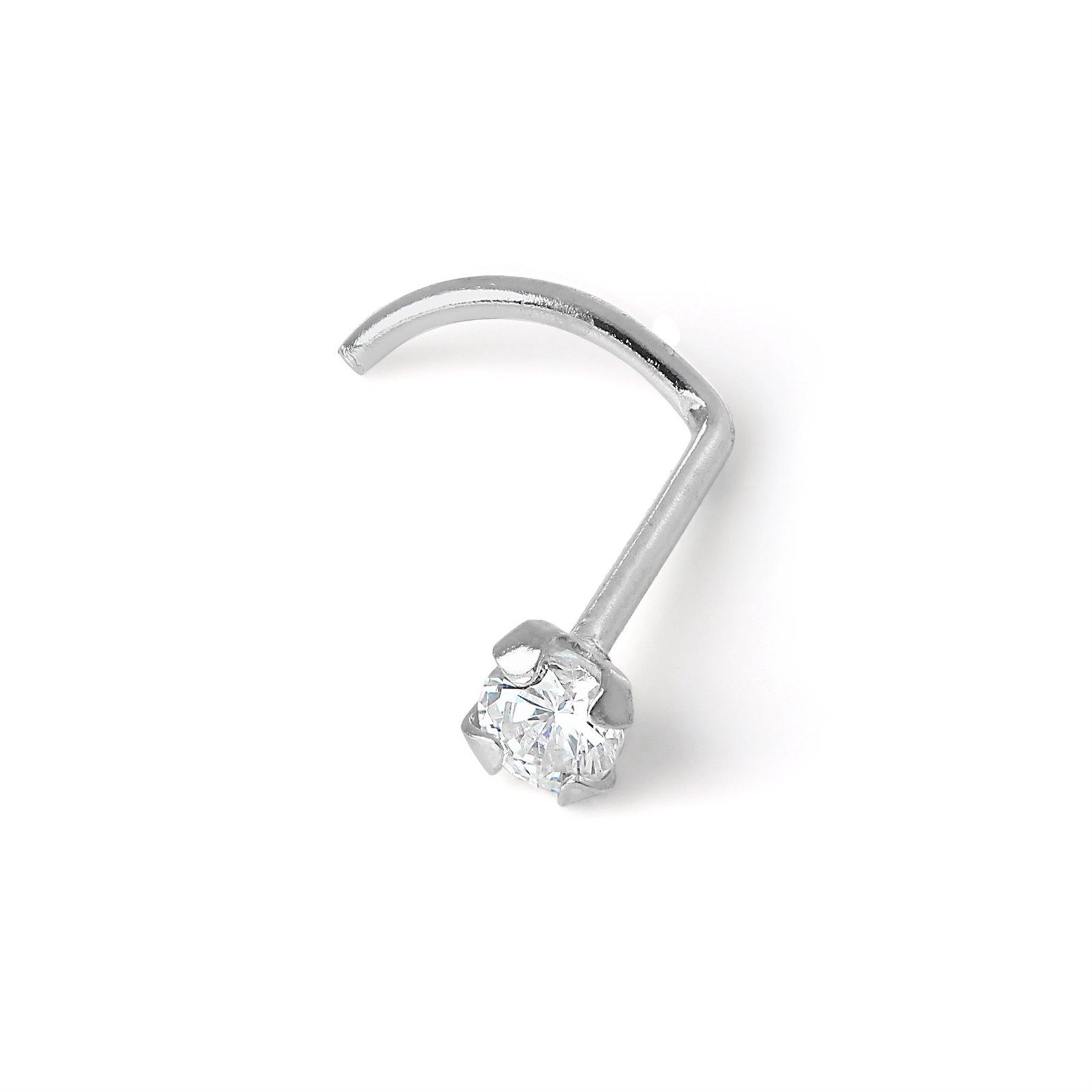 AZARIO LONDON 9K White Gold Nose Stud Prong Set 2MM Round CZ Stone 22 Gauge L Bend Nose Stud Piercing
