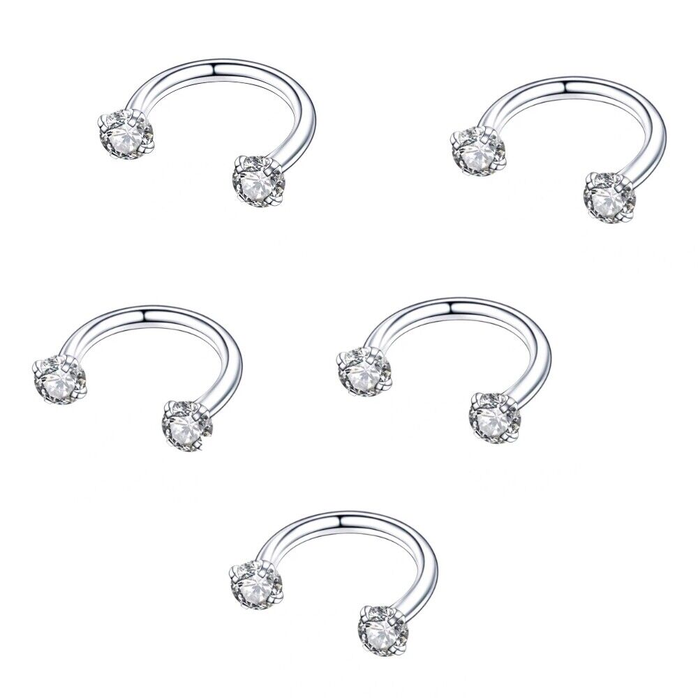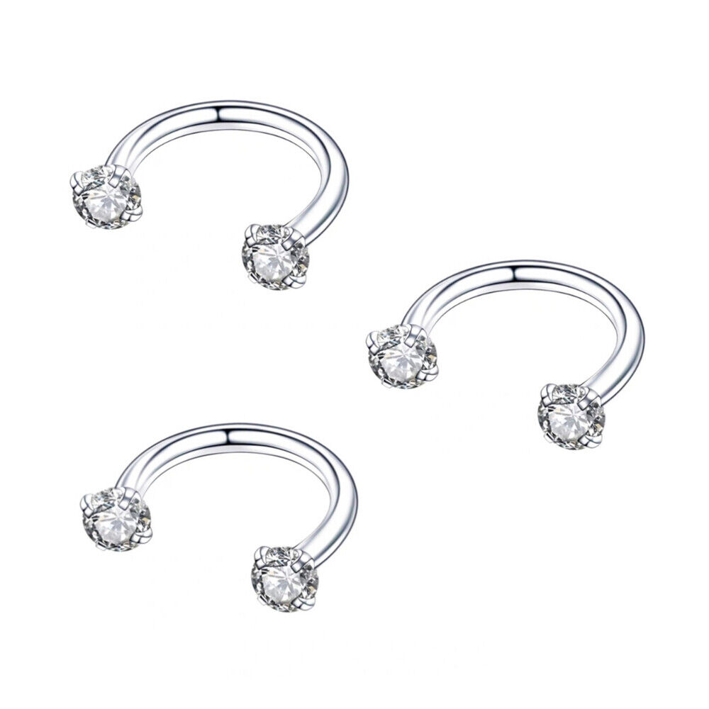 3/5pc Steel Zircon Horseshoe Ring Bar Internal Thread Lip Nose Ear Stud Piercing