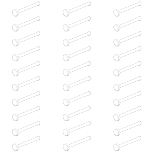 Crdifu 30pcs Clear Nose Studs Retainers 20G Flat Top Transparent Screw L Shaped Nose Bone Stud Piercing for Work School
