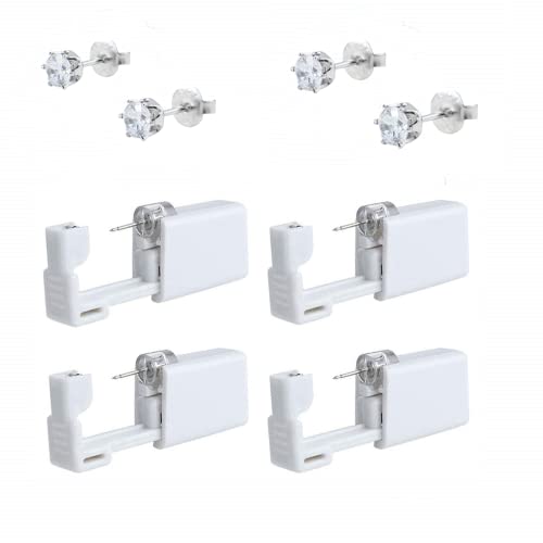 Kuesn 4 Pack Ear Piercing Gun Kit - Disposable Self Mixed Colours - Safety No Pain - Ear Nose Piercing Gun with Stud (White Crown)