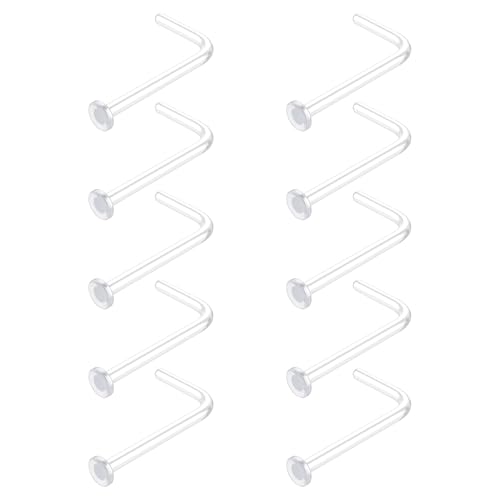 AceFun 20g Clear Nose Stud Piercing Retainer Bioflex Plastic L Shape Nose Studs Retainers Flat Top clear nose studs hide piercing for school invisible Nose Piercing 20 Gauge (0.8mm) 10 pieces