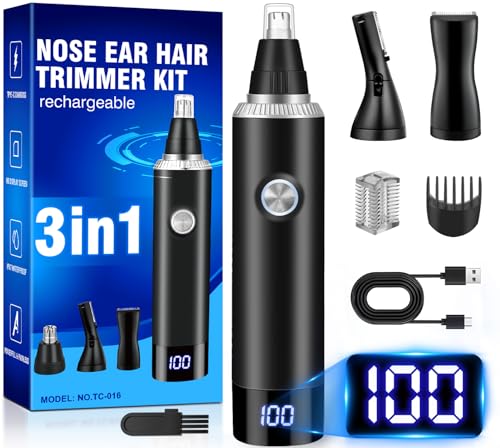 Rechargeable Nose Hair Trimmer for Men and Women, 3-in-1 Professional Painless Eyebrow and Facial Hair Trimmer, IPX7 Waterproof Nose Trimmer Men with Dual Edge Blades,Eyebrow Trimmer