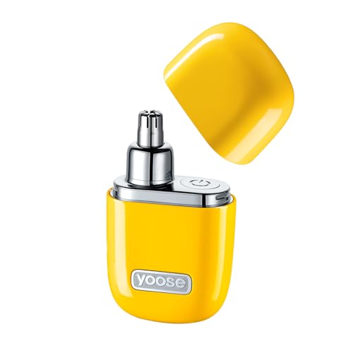 yoose Nose Trimmer, Portable Alloy Nose Hair Trimmer for Men Women, Rechargeable, Washable Nose Trimmer, Detachable Head, Easy to Clean, Travel Size, Dual Edged Blades, Painless Trimming, Yellow