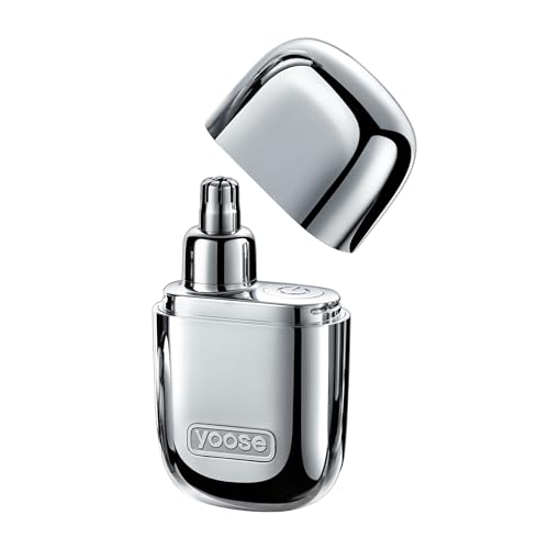 yoose Nose Hair Trimmer, Portable Alloy Nose Trimmer for Men Women, Rechargeable, Washable Nose Trimmer, Detachable Head, Easy to Clean, Travel Size, Dual Edged Blades, Painless Trimming, Silver