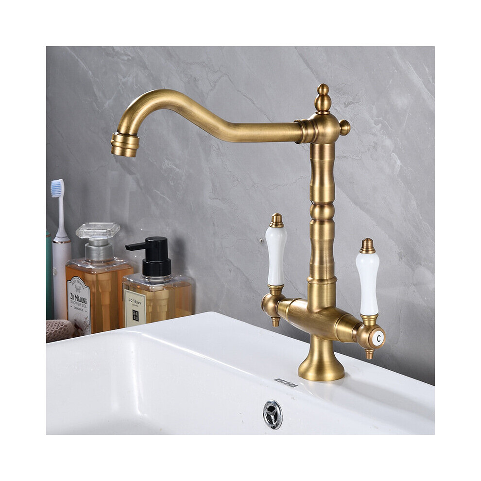 (Antique Brass) Antique Kitchen Tap 360° Rotatable Sink Tap Two-Handle Mixer Tap Nostalgia Mixer Tap High Pressure Kitchen Sink Tap High Spout Brass