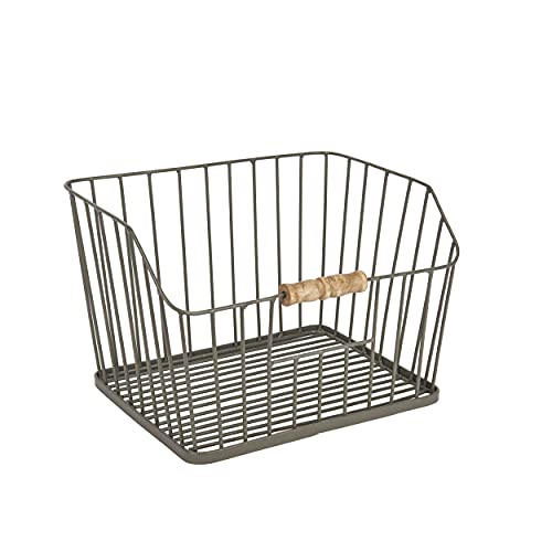 KitchenCraft Living Nostalgia Large Wire Storage Basket for Kitchen, Bathroom Counter or Wall Mounted Storage, 23.5 x 28.5 x 19 cm, Grey