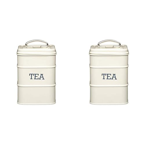 KitchenCraft Living Nostalgia Range Stainless Steel Tea Storage Tin, Cream, 11 x 11 x 17 cm, Antique Cream (Pack of 2)