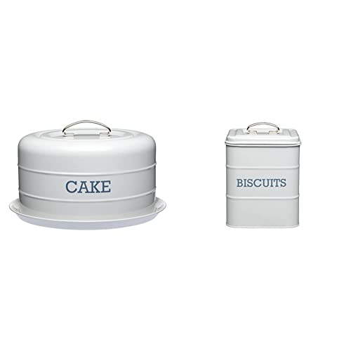 Living Nostalgia KitchenCraft Cake Tin Storage, Airtight Cake Storage Tin/Cake Dome, 28.5 x 18 cm - French Grey & Living Nostalgia LNBISCGRY Biscuit Tin, Grey, 14.5 x 19 cm