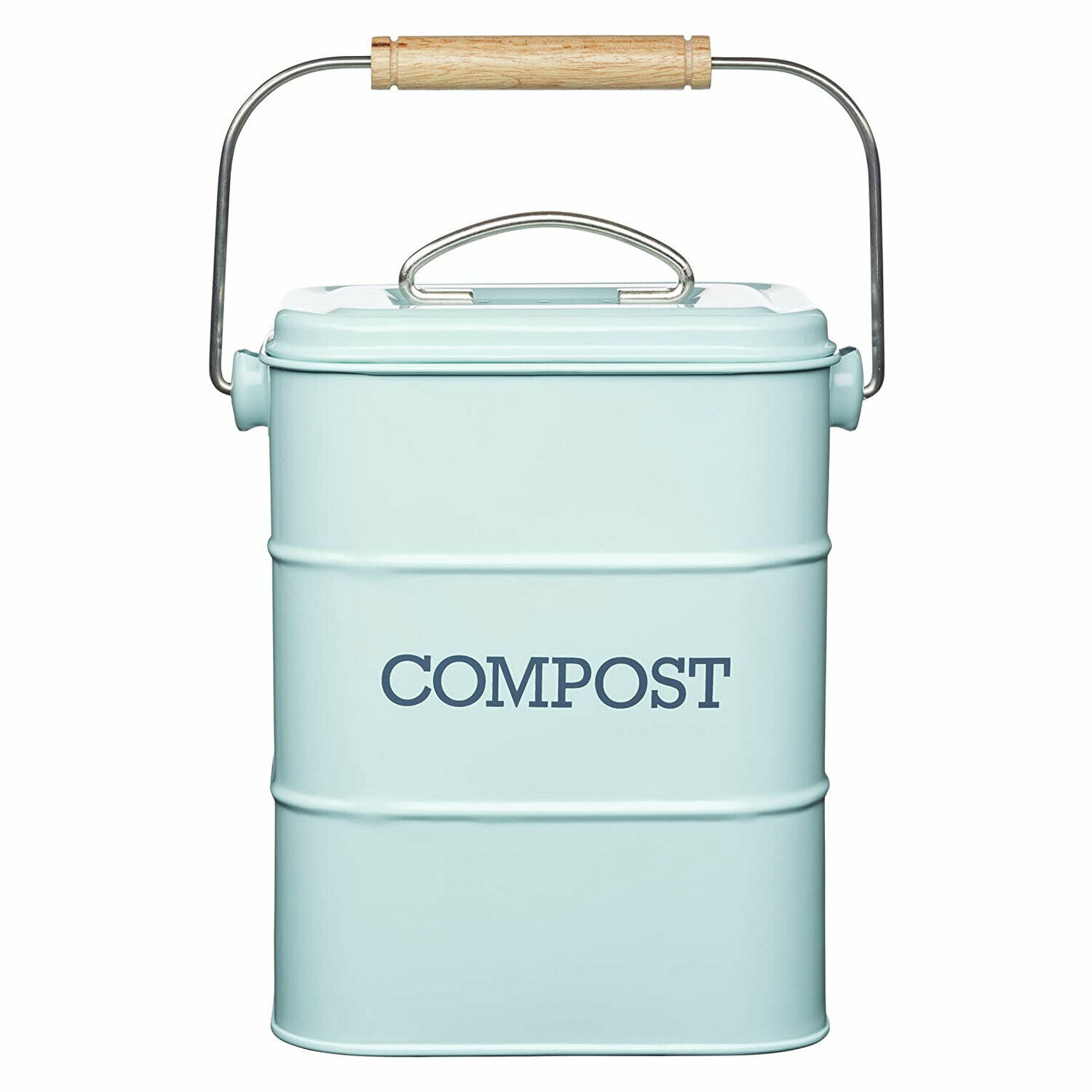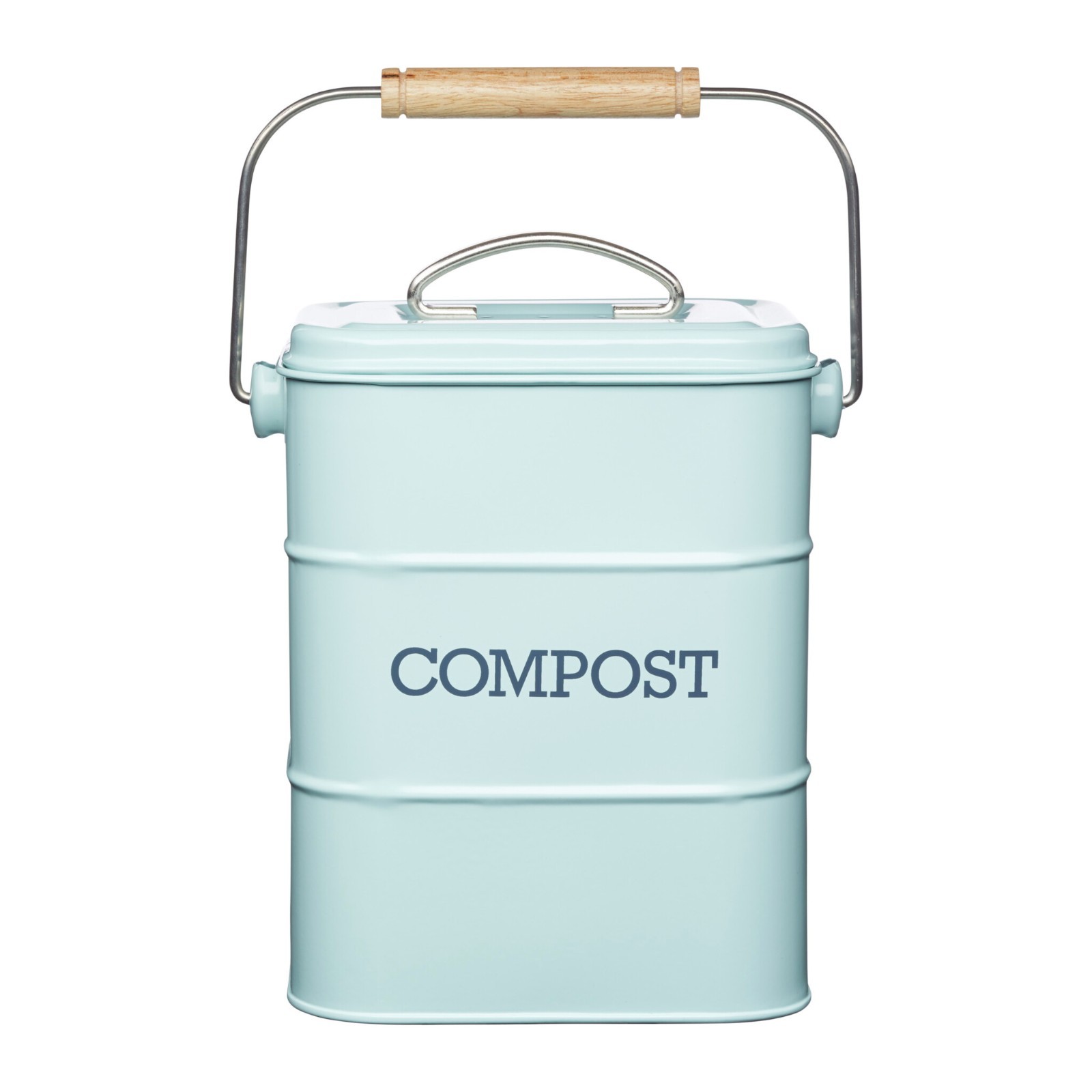 Kitchen Living Nostalgia Metal Kitchen Compost Bin, Duck Egg Blue - LNCOMPBLU