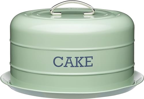 KitchenCraft Living Nostalgia Cake Storage Tin, Airtight Cake Dome, 28.5 x 18cm, English Sage Green
