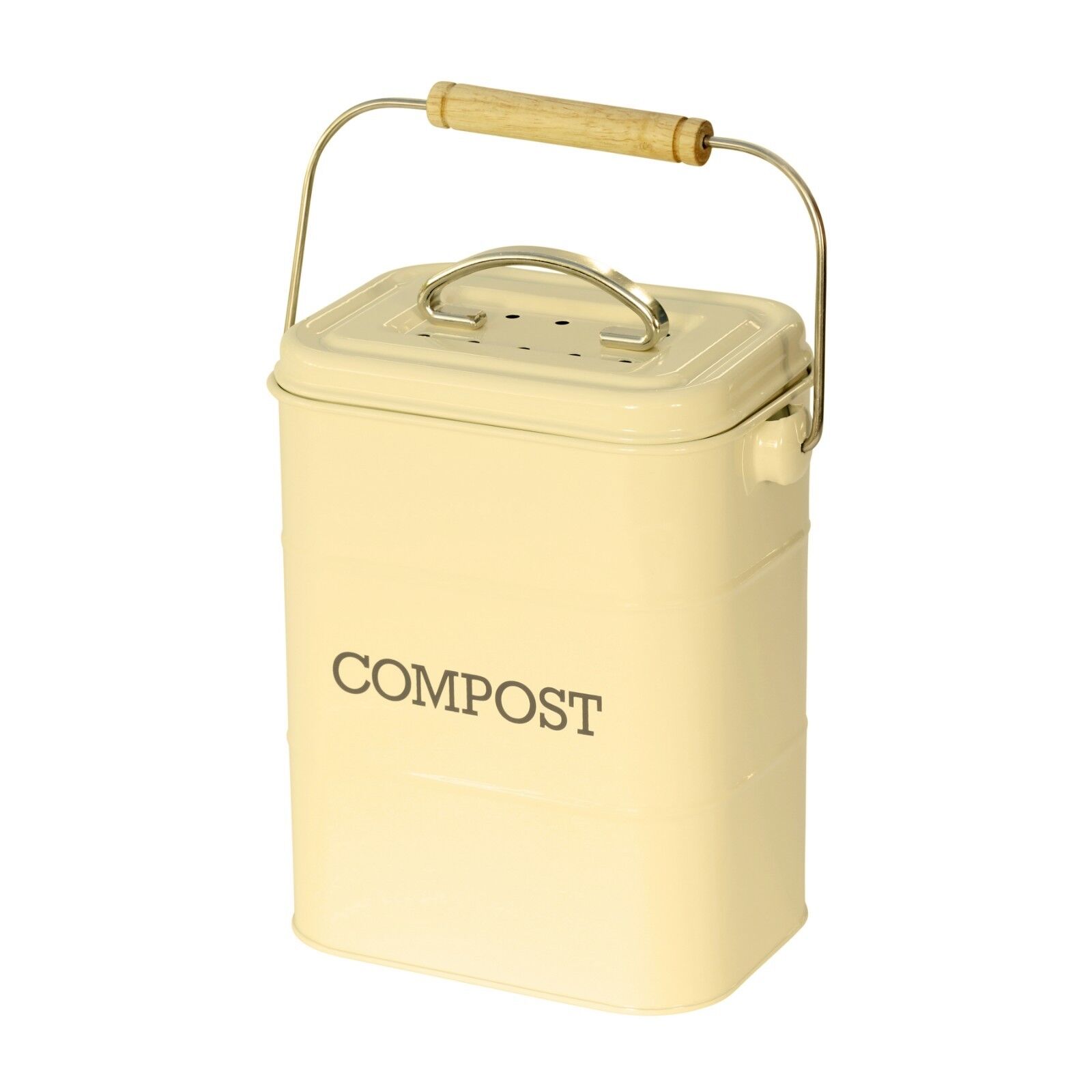 Nostalgia Antique Cream Compost Caddy - Metal Kitchen Compost Bin