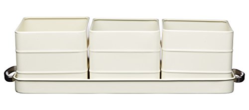 KitchenCraft Living Nostalgia Indoor Metal Herb Pots and Tray Set, Vintage Inspired Mini Herb Garden, 39 x 12 x 1 cm - Antique Cream