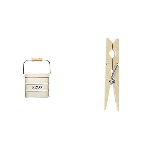 KitchenCraft Living Nostalgia Hanging Metal Peg Tin - Antique Cream & Elliott 36 Wooden Hardwood Clothes Pegs