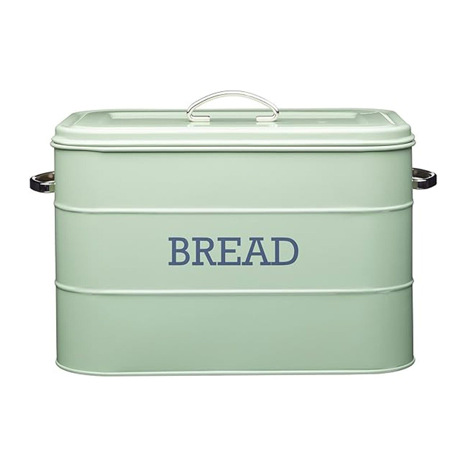 KitchenCraft Living Nostalgia Large Metal Bread Bin 34 x 21.5 x 25 cm In Sage
