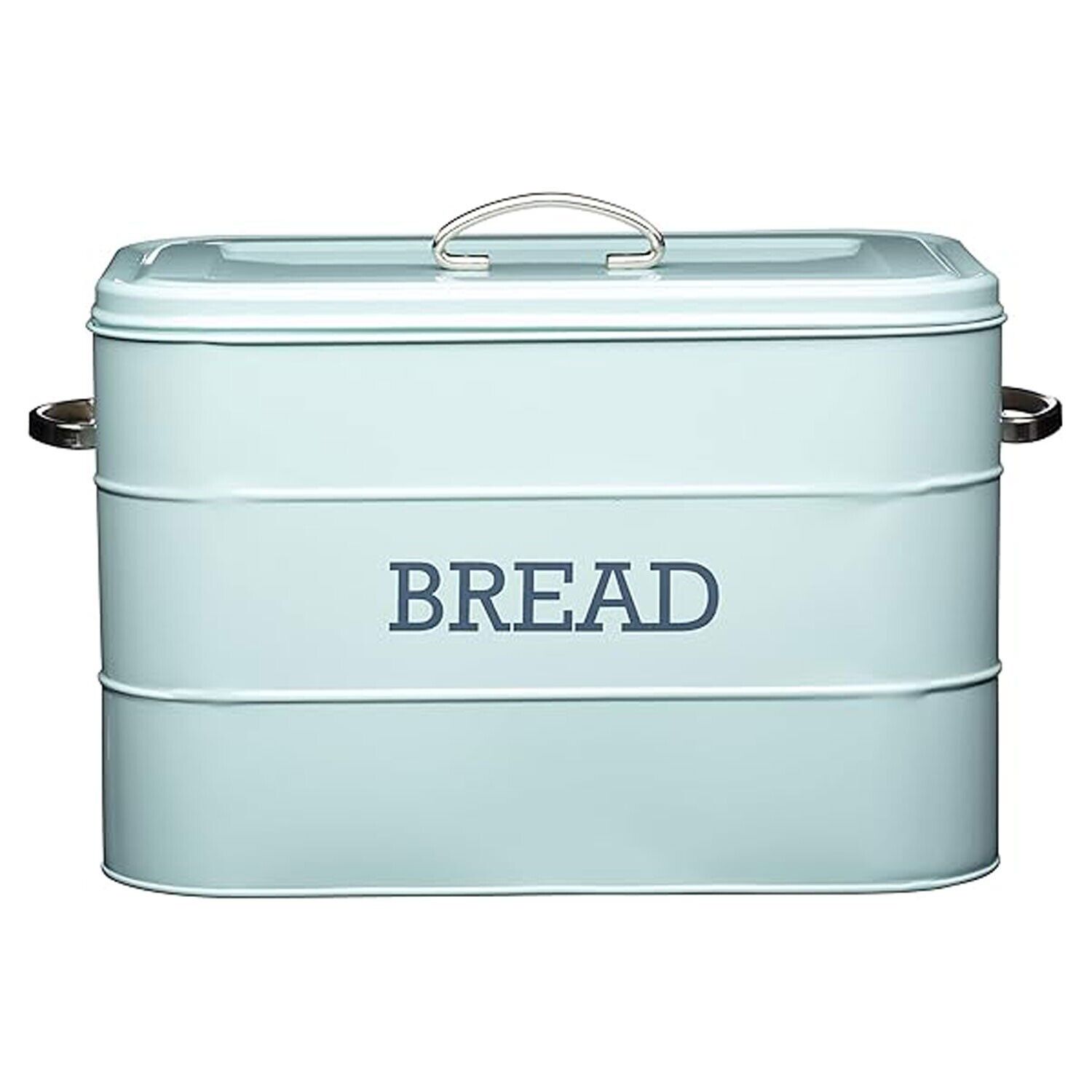 KitchenCraft Living Nostalgia Large Metal Bread Bin, 34 x 21.5 x 25 cm In - Blue