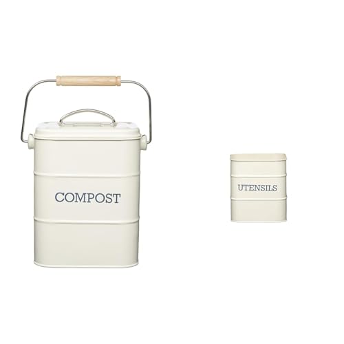 KitchenCraft Living Nostalgia Kitchen Compost Bin, Metal, 16.5 x 12 x 24 cm, Antique Cream & Living Nostalgia, Kitchen Utensil Holder, Metal, 15 x 16 cm, Antique Cream