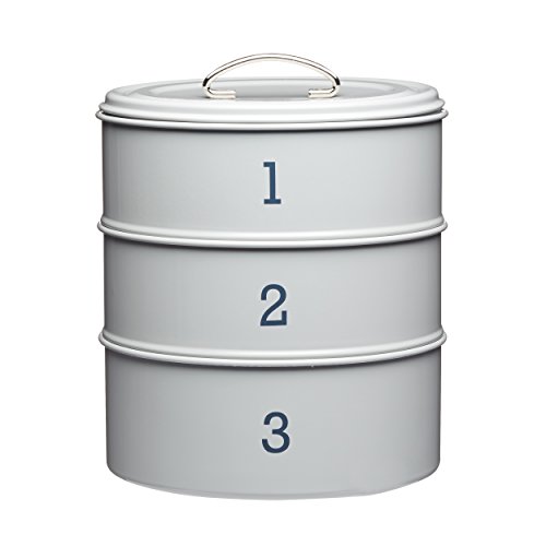 KitchenCraft Living Nostalgia 3-Tier Metal Cake Storage Tin, 22 x 27 cm (8.5 x 10.5 Inches) - French Grey