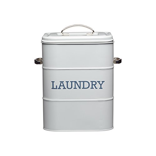 KitchenCraft Living Nostalgia 3 kg Metal Laundry Powder Tin, Kitchen/Utility Detergent Storage Box Accessory, 19 x 16 x 27 cm - French Grey