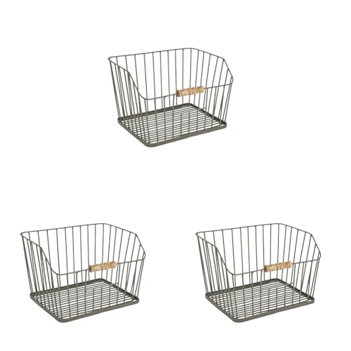 KitchenCraft Living Nostalgia Large Wire Storage Basket for Kitchen, Bathroom Counter or Wall Mounted Storage, 23.5 x 28.5 x 19 cm, Grey (Pack of 3)
