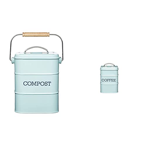 KitchenCraft Living Nostalgia, Kitchen Compost Bin, Metal, 16.5cm x 24 cm, Duck Egg Blue & LNCOFFEEBLU Living Nostalgia Coffee Storage Canister, 11 x 17 cm - Vintage Blue