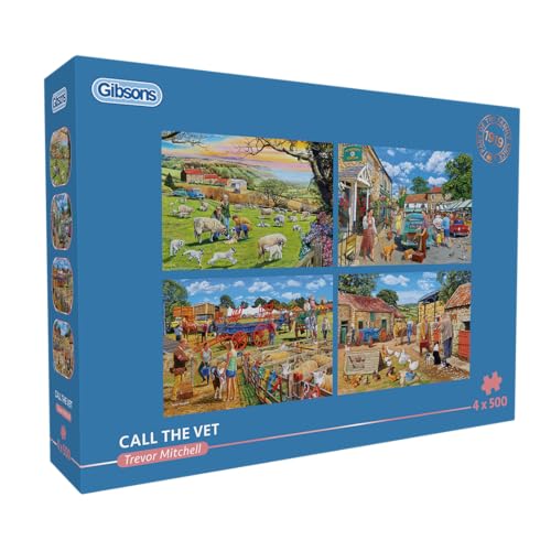 Gibsons Call the Vet 4 x 500 Piece Jigsaw Puzzle Set for Adults – Nostalgic Countryside Scenes by Trevor Mitchell – Relaxing Farm Life Collection – Premium British Multi-Box Puzzle Gift