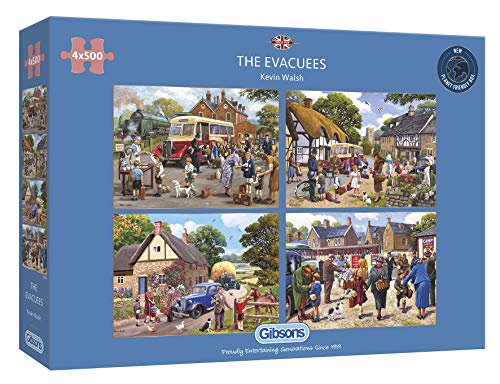 Gibsons The Evacuees 4 x 500 Piece Jigsaw Puzzle Set – Nostalgic WW2 Countryside Scenes by Trevor Mitchell – Multi-Box Puzzle Collection for Adults – Sustainable Premium Quality Gift