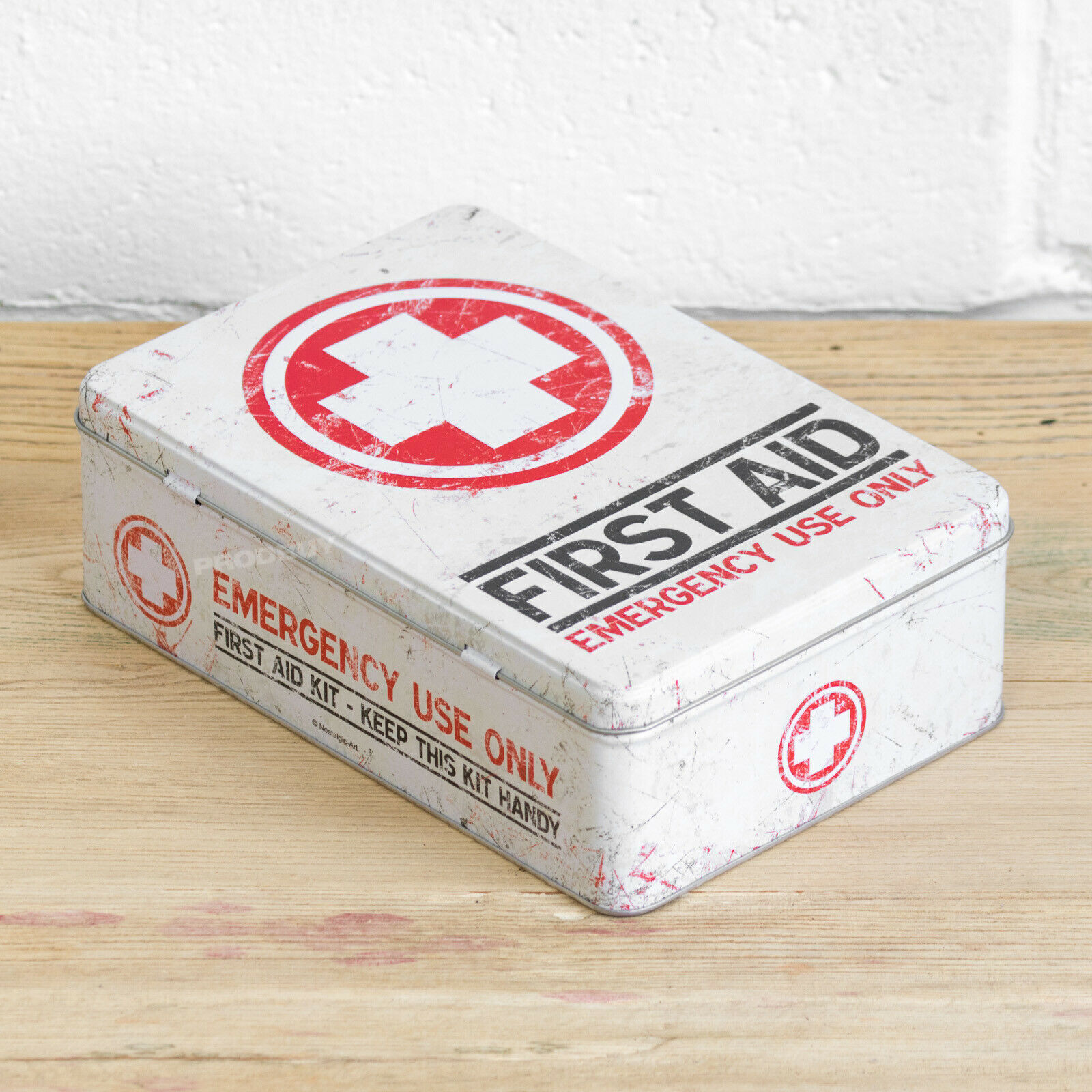 Retro 'First Aid' Tin 2.5L Empty Storage Container Metal Medicine Supplies Box