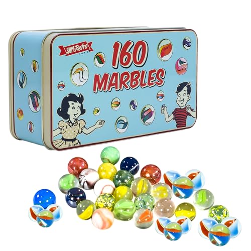 D.A.Y. Republic 160 Assorted Marbles in a Metal Storage Tin Box 3 Assorted Sizes - Fun and Retro Design, Nostalgic Traditional Cat's Eyes, Toys for Indoor and Outdoor Games, Colourful Glass Marbles