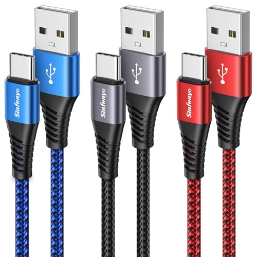 Sinfenyo USB C Charger Cable 3Pack 1M, 3A USB A to USB C Cable Charging Rapid for Samsung Galaxy S24 S23 S22 S21 S20 Ultra Note 10 S9 A20 A12 A20e A21s,Z Flip 4,iPhone 16/15 Pro, Pixel 8/7