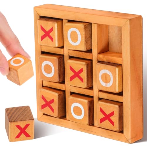 JISADER Wooden Tic Tac Toe Game - Classic Noughts and Crosses Coffee Table Decor Strategy Board Game for Families and Kids