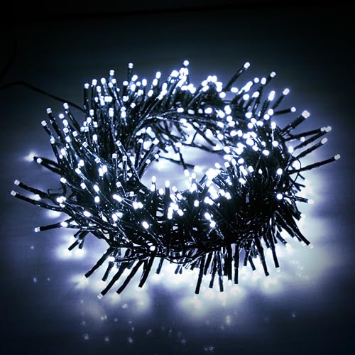 EcoNour Christmas Tree Cluster Lights - 1000 LED - Cool White - 6 Hours Timer, 8 Lighting Modes, Plug-in, Waterproof for Indoor & Outdoor Use - 10m Lit Length