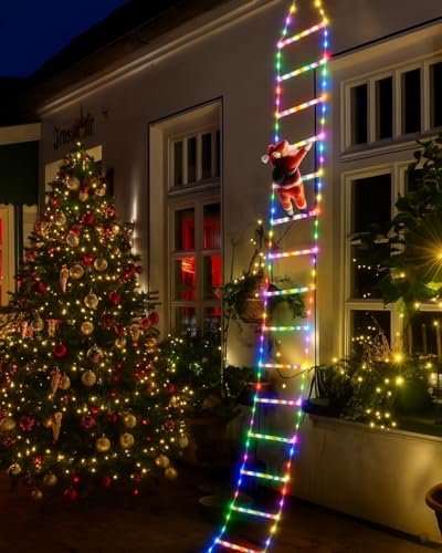 EcoNour Christmas Ladder Lights with Santa Claus - 200 LED Lights, 8 Light Modes, Timer Memory Function, Mains Powered, Indoor Outdoor Garden Tree Christmas Decorations (Multiple Color)